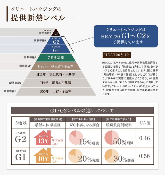 高断熱・高気密 HEAT20 G2~G1を基準